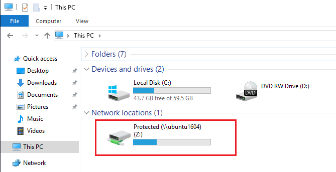 Restart Samba and open Windows File Explorer to view the shared location on Ubuntu